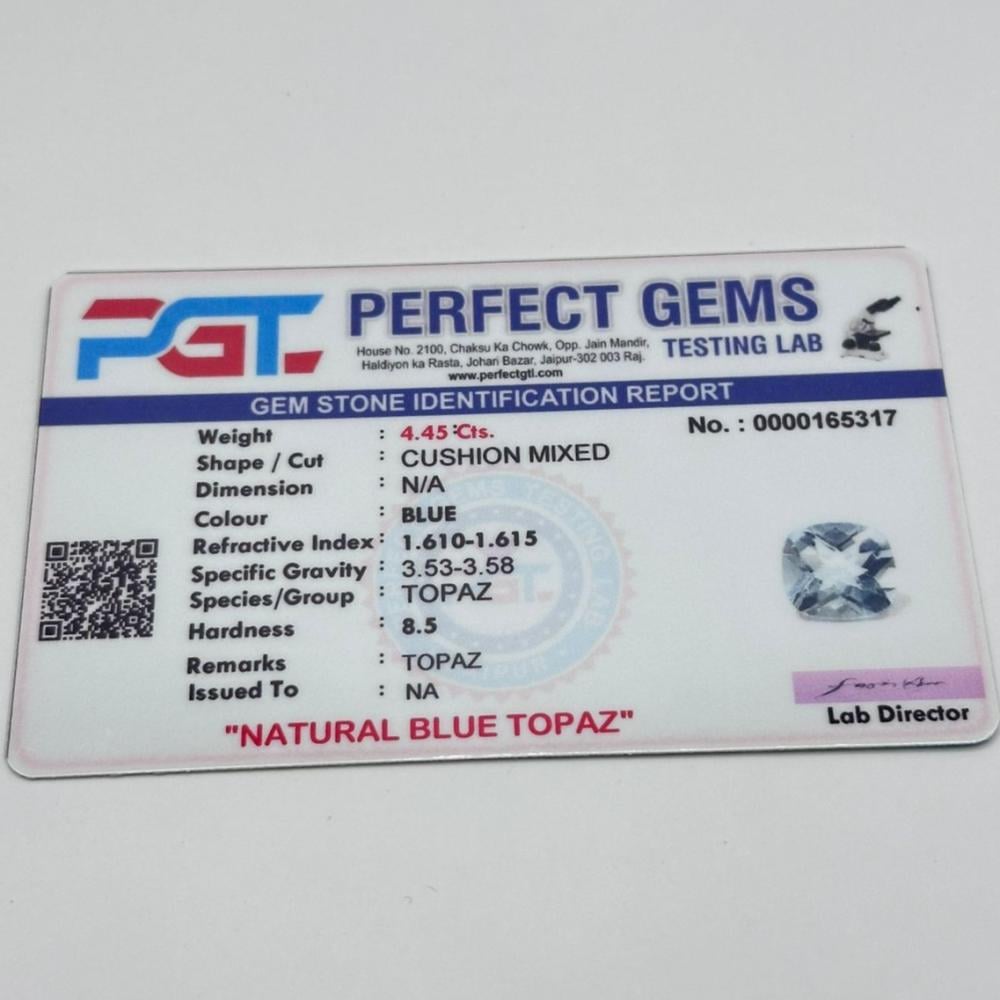 توباز طبيعي، حجر توباز، حجر كريم طبيعي، توباز 4.45 قيراط، شهادة فحص حجر كريم، مجوهرات فاخرة، أحجار كريمة طبيعية، حجر كريم موثوق، توباز أزرق، مجوهرات أصلية