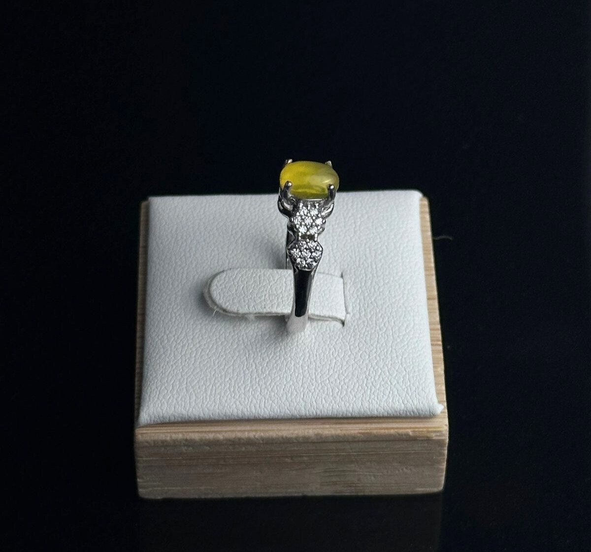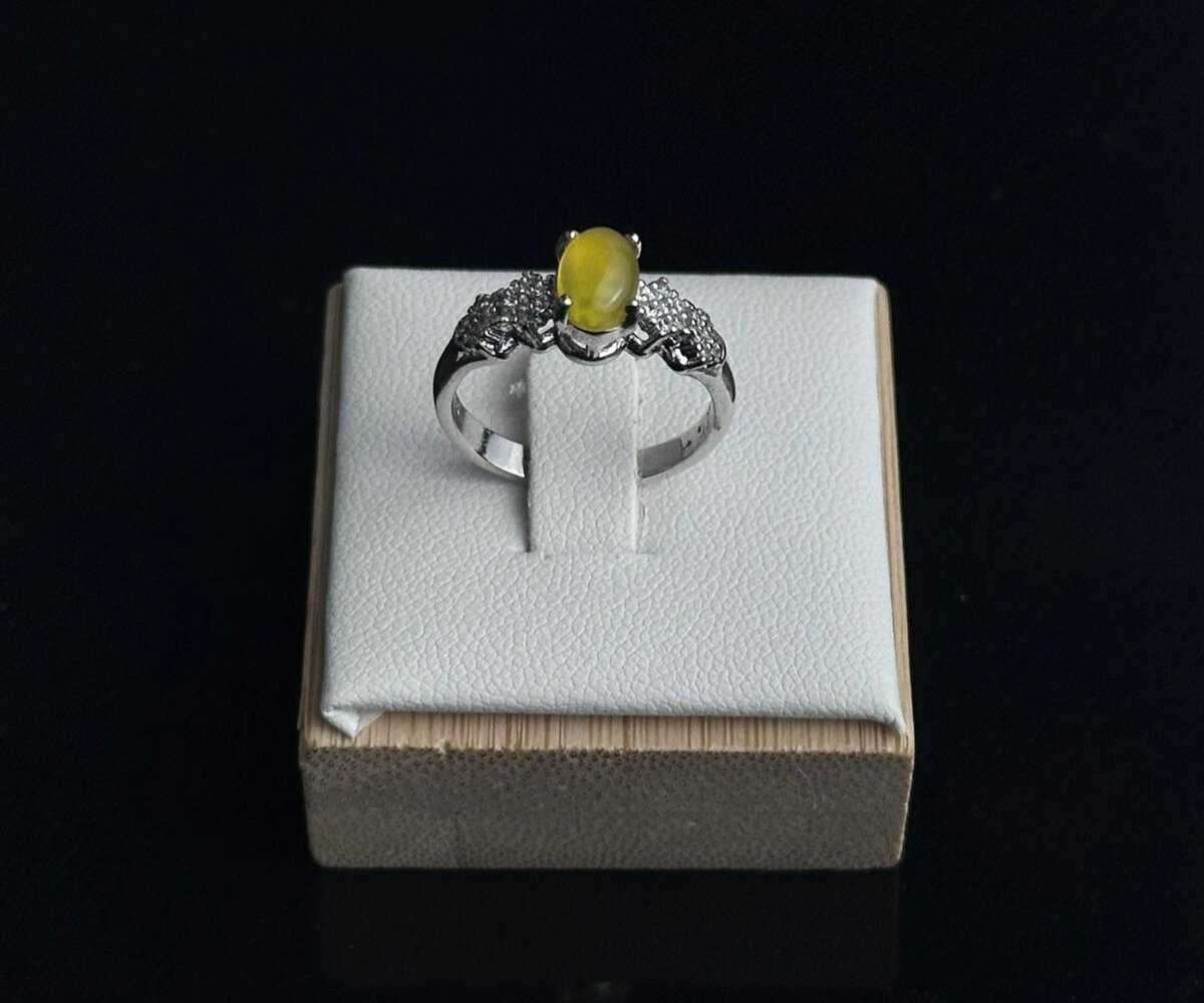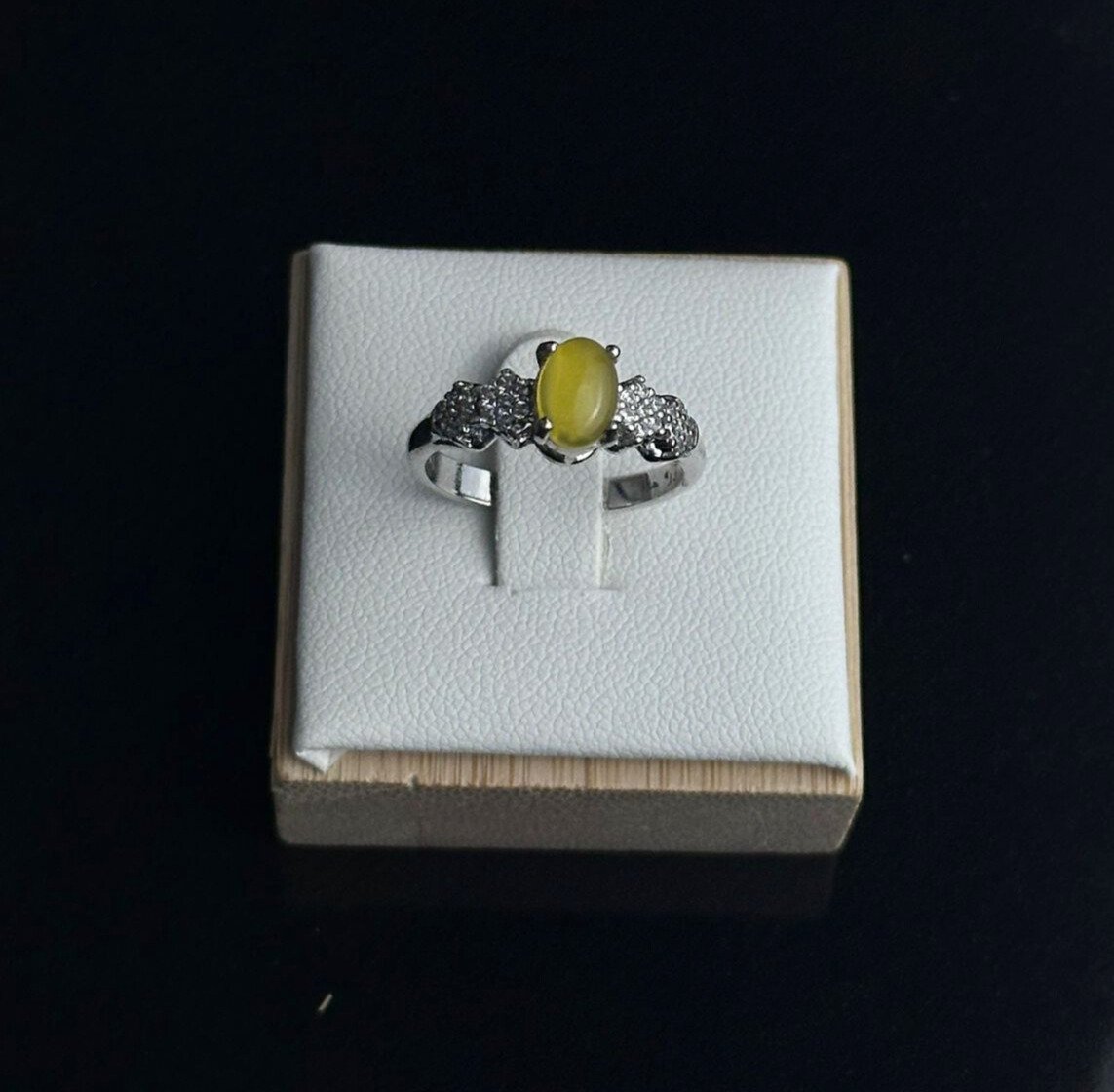والمزخرف بحجر شرف الشمس الذهبي المشرق. حجر شرف الشمس، المعروف بلونه الفريد والإشراقة التي يمنحها، يضفي لمسة من الفخامة والجمال على إطلالتك. يتميز الخاتم بتصميم عصري يجمع بين الأناقة والبساطة، مما يجعله الخيار المثالي لإضافة تميز وجاذبية لأي مناسبة.