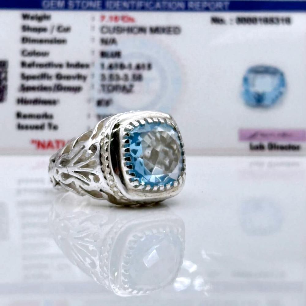 خاتم رجالي أنيق وفاخر مزوّد بحجر توباز طبيعي موثّق بشهادة فحص تؤكد أصالة وجودة الحجر.