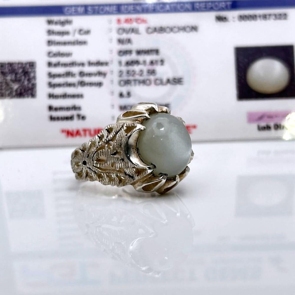 خاتم رجالي مميز بحجر القمر الطبيعي بوزن 8.40 قيراط،
