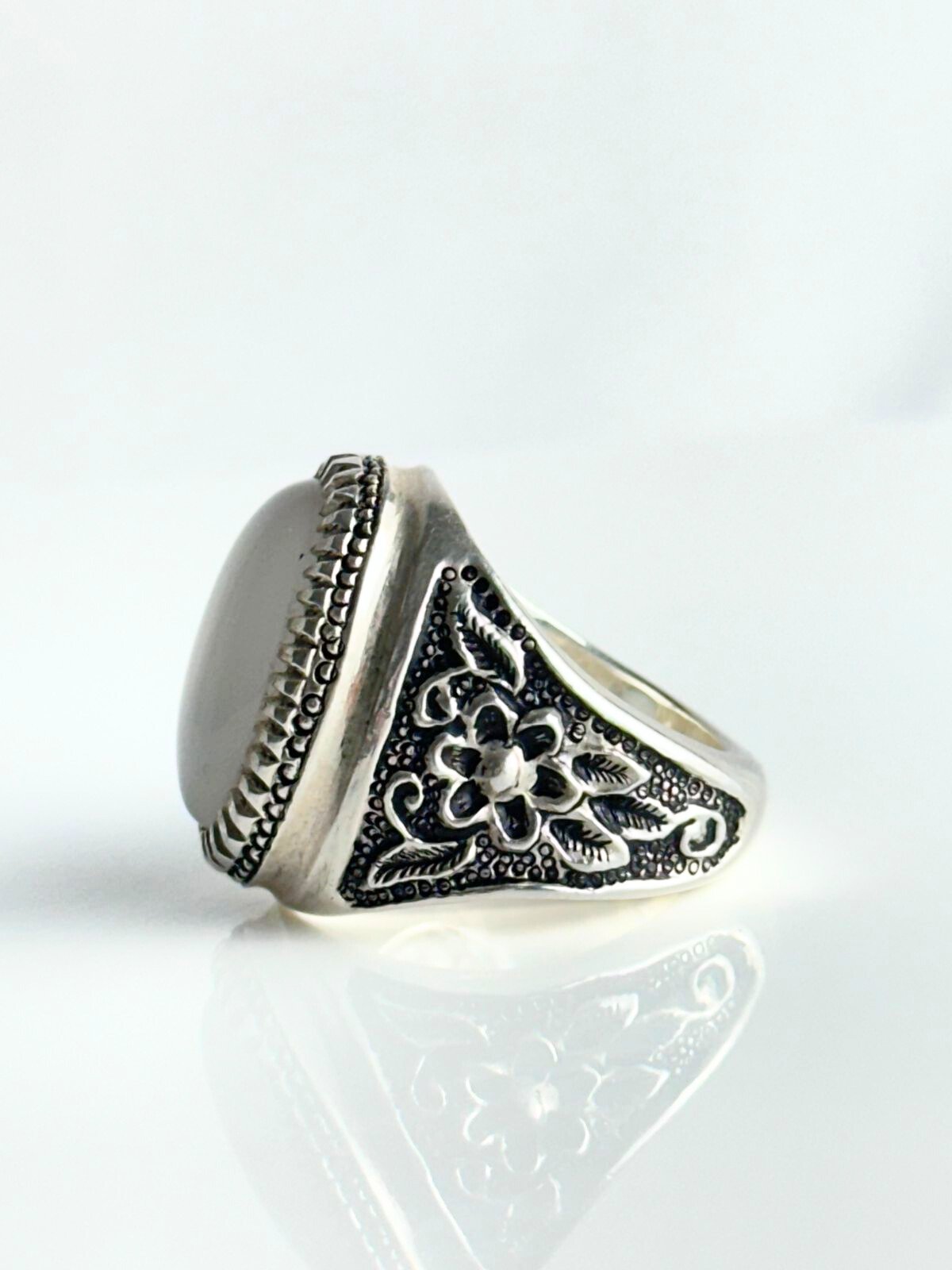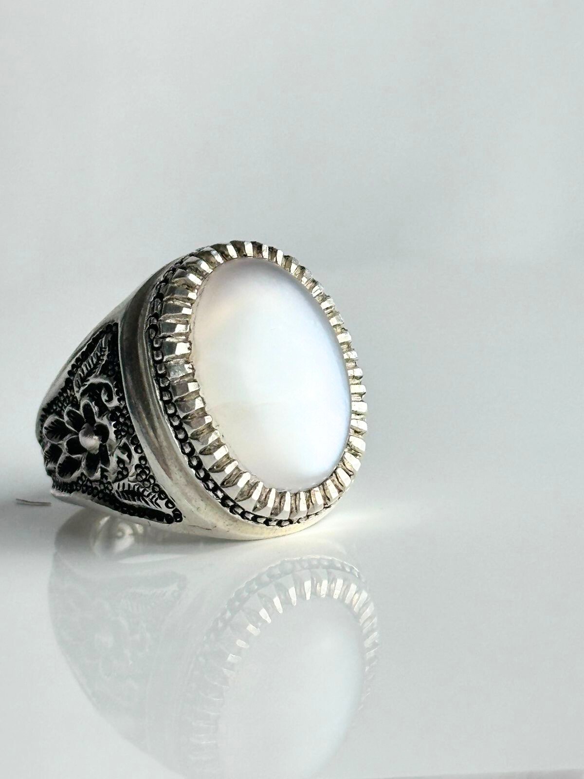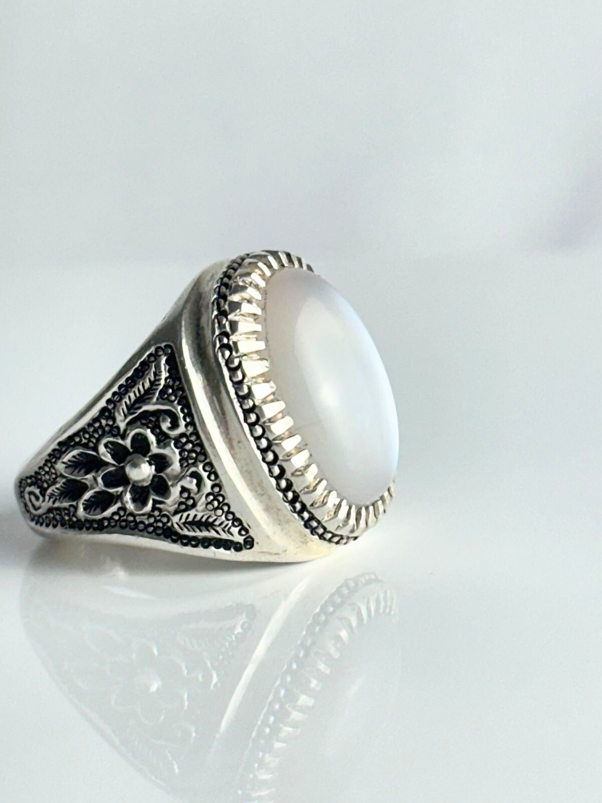 خاتم حجر القمر مُتوج بأجود الصياغات اليدويةصياغة يدوية متقنة , (صياغة العمدة )فضه سميكة عيار 925وزن الخاتم : 27 قراممقاس الخاتم : 8.5 أمريكيالمقاس قابل للتعديل لدى محلات الذهب والفضة ,