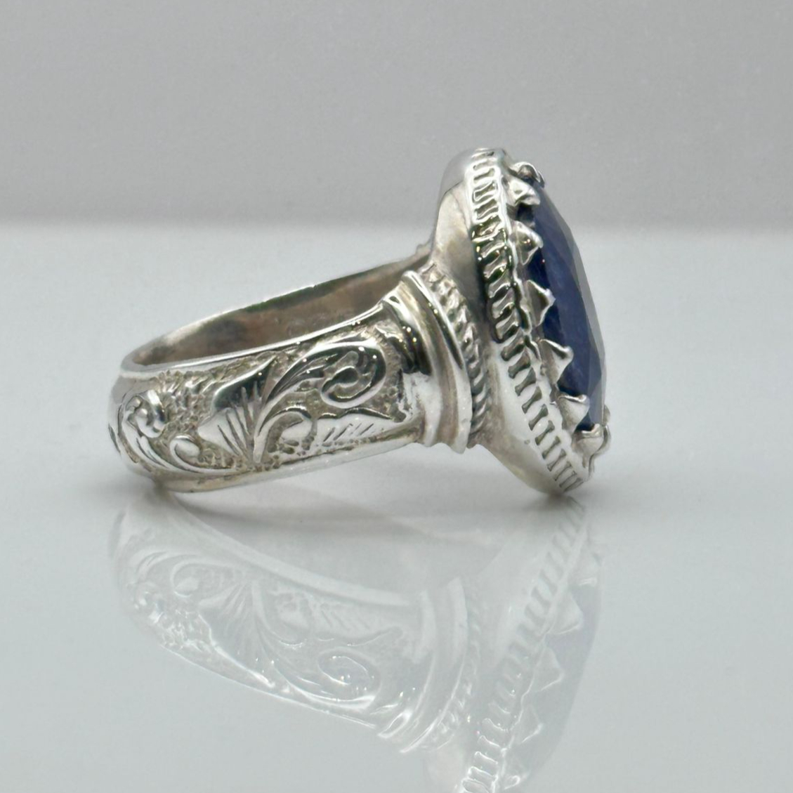 خاتم رجالي أنيق بحجر زفير أفريقي أزرق طبيعي، يتميز بلونه العميق ووزنه المثالي الذي يبلغ 5.05 قيراط،