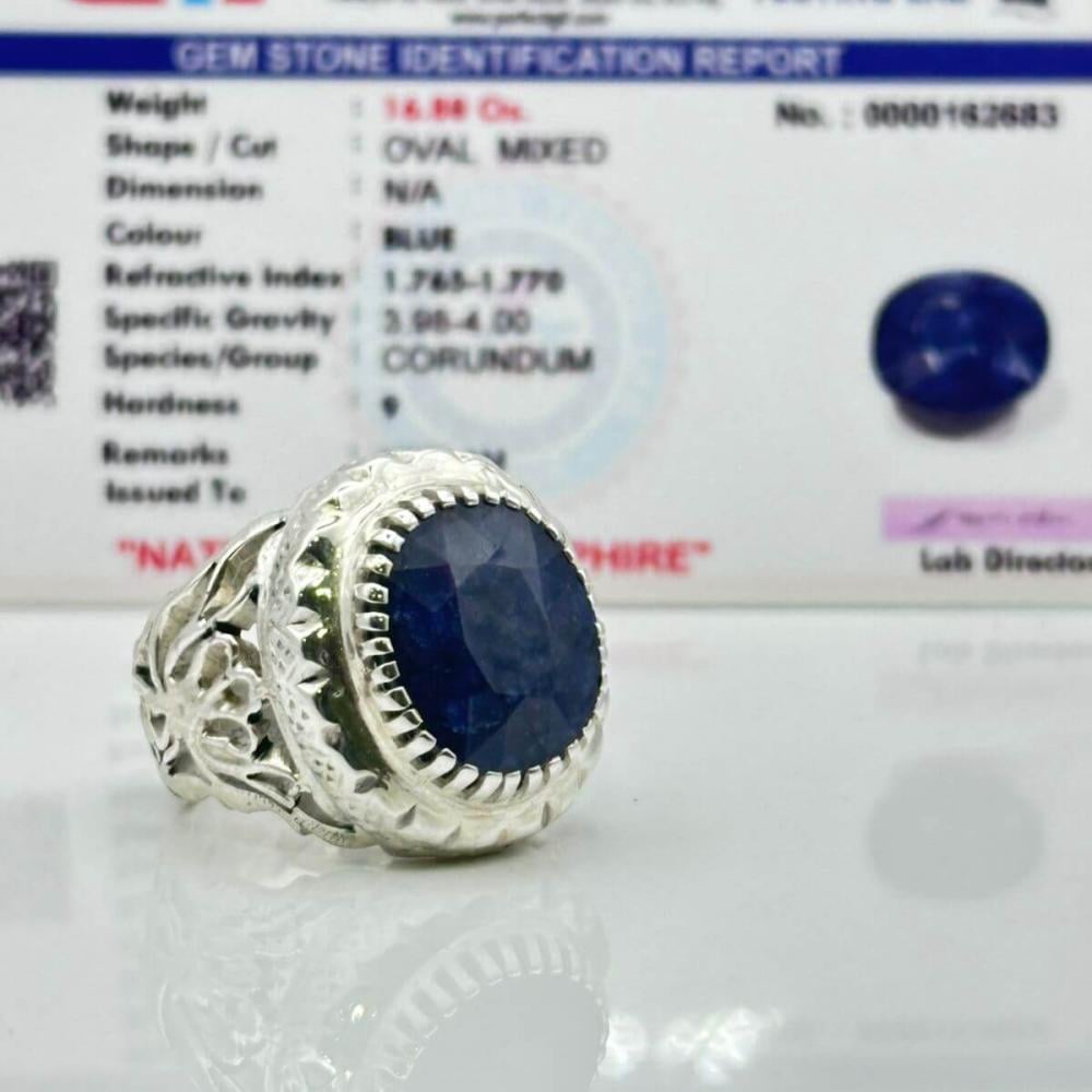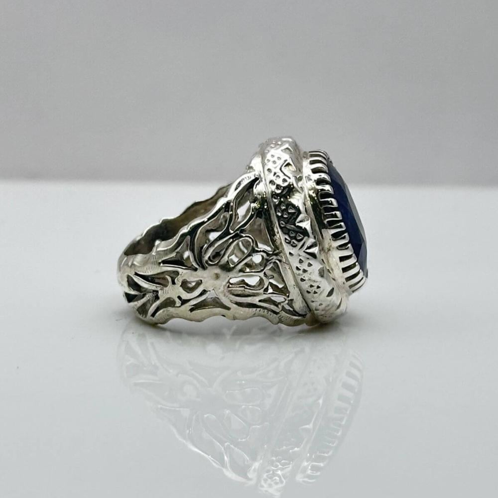 يمنح مرتديه حضورًا قويًا ولمسة من الفخامة الكلاسيكية. الحجر مصقول بعناية ليُبرز لونه الأزرق العميق ووزنه العالي الذي يجعله مركز الاهتمام في كل مناسبة.