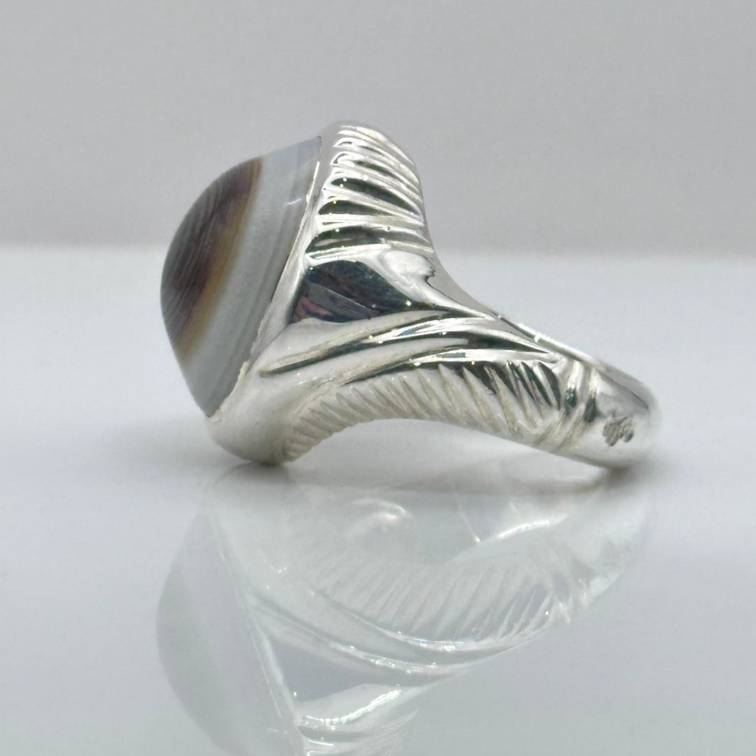 الحجر الطبيعي الكبير بمقاس 19.2 × 16.3 ملم، يحمل نقوشًا وتدرجات لونية مميزة، ويتميز بنقشة "العين" المركزية التي تجذب الأنظار، ليضفي على يدك رونقًا وجاذبية مميزة.