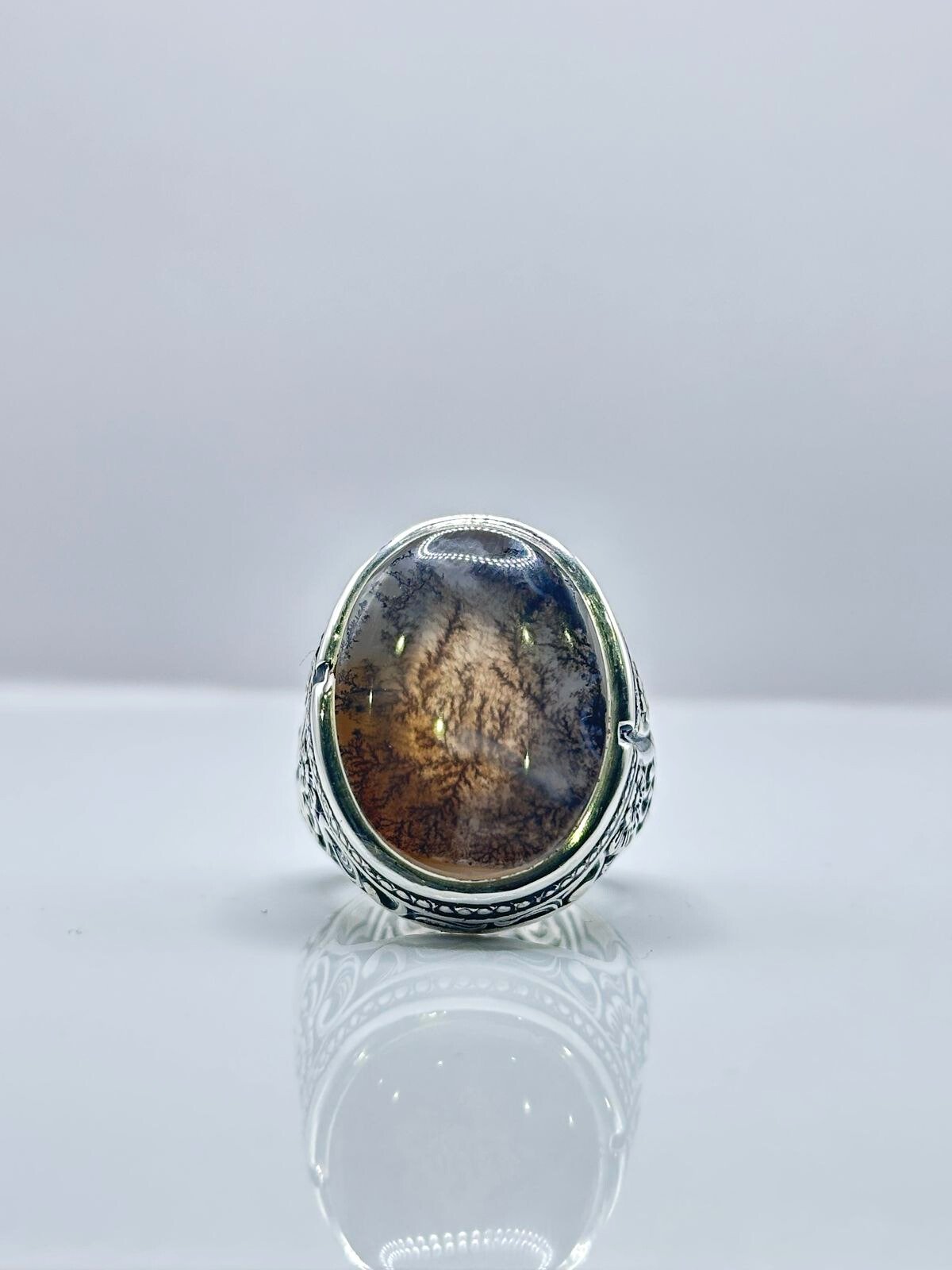 هذا الحجر الاستثنائي يتوج بتصميم فاخر من فضة عيار 990، مع نقش داخلي فني على الخاتم يمنحه شخصية خاصة لا تُنسى. القطعة مناسبة لهواة العقيق ومحبي التميز، فهي ليست مجرد زينة بل قطعة فنية تحمل طابعًا نادرًا.