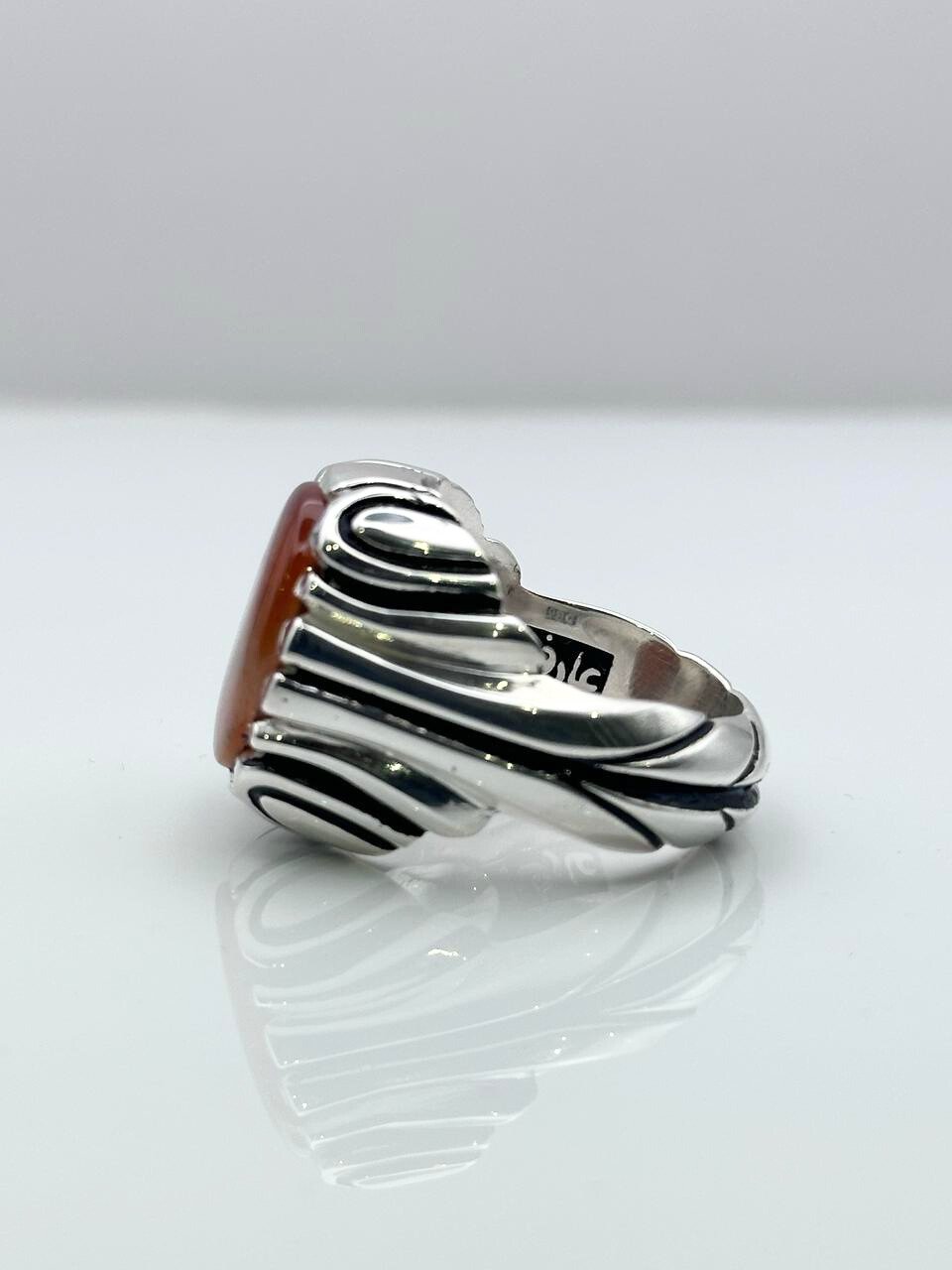اكتشف تميز الإطلالة مع خاتم عقيق يماني مشجر المصنوع بدقة وحرفية عالية من قبل عارف،