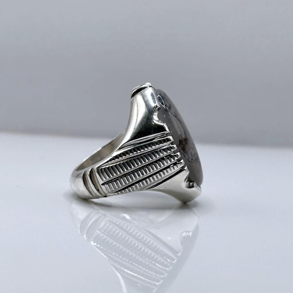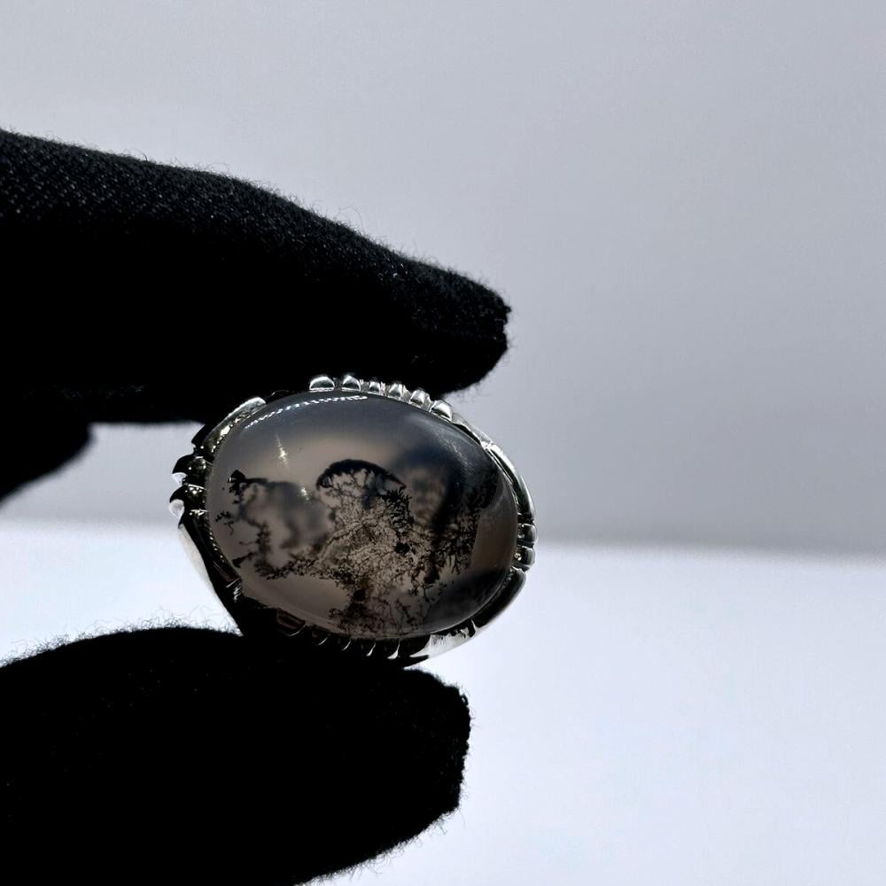 تميّز بإطلالة فريدة لا تشبه سواها مع هذا الخاتم الراقي المصنوع من العقيق اليماني الزجاجي المشجر النادر،