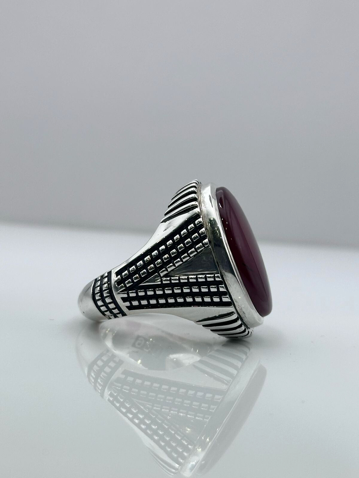 للباحثين عن التميز والقطع النادرة، نقدم لكم خاتم عقيق يماني ياقوتي زجاجي