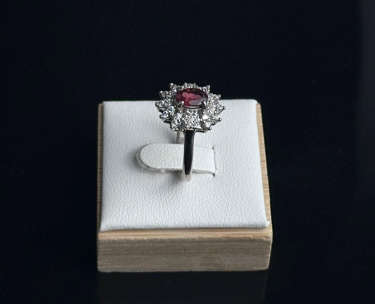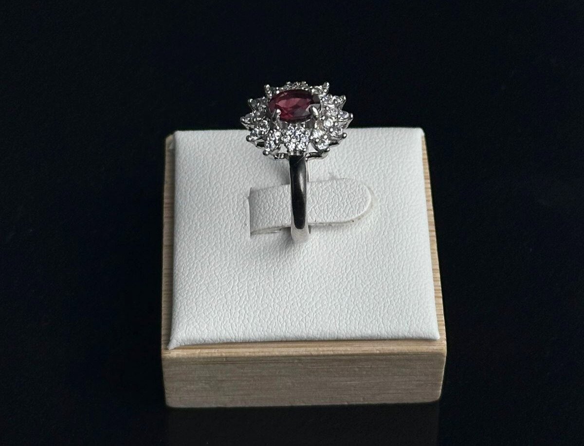 مزين بحجر الياقوت الطبيعي الذي يتمتع بلونه الأحمر العميق والمشع.