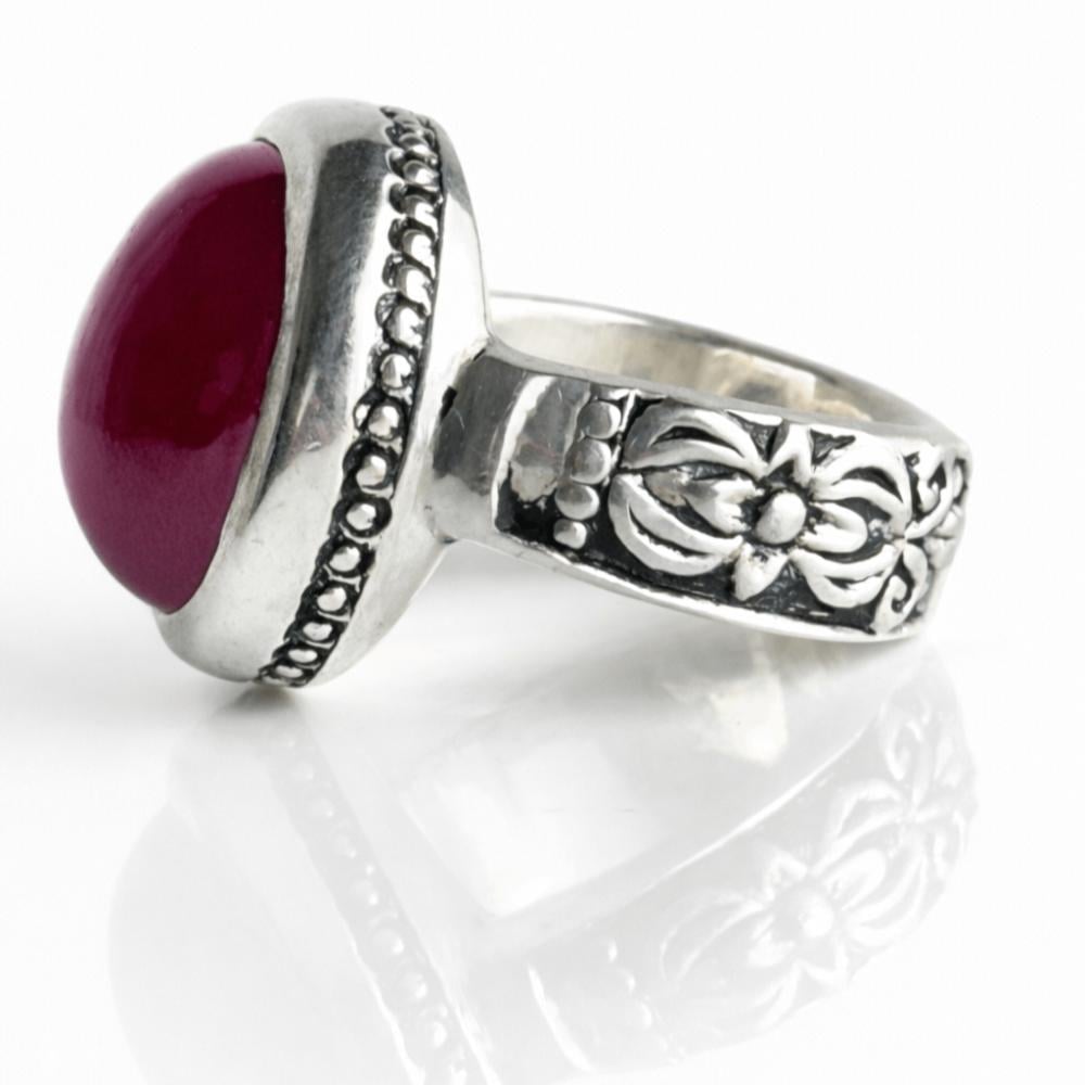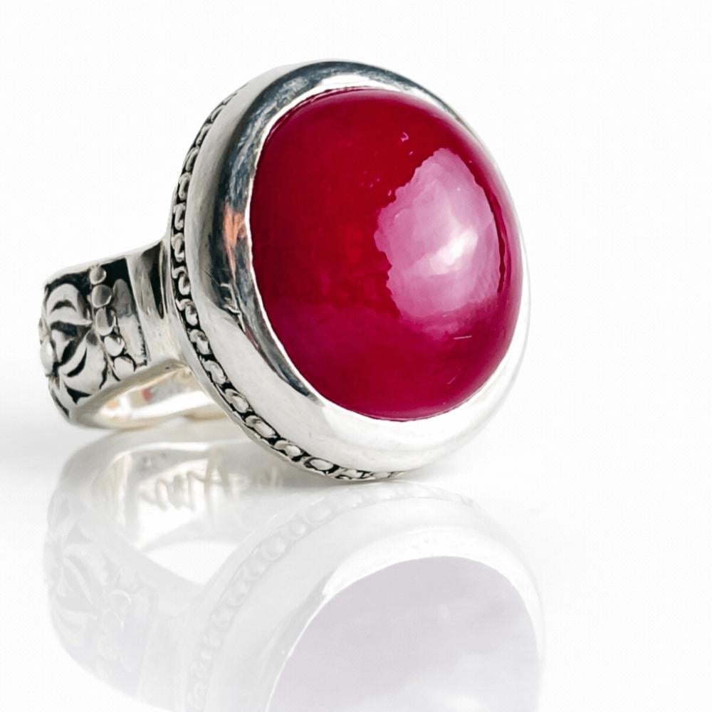 خاتم ياقوت أحمر طبيعي فضة 925 بتصميم يدوي فاخر