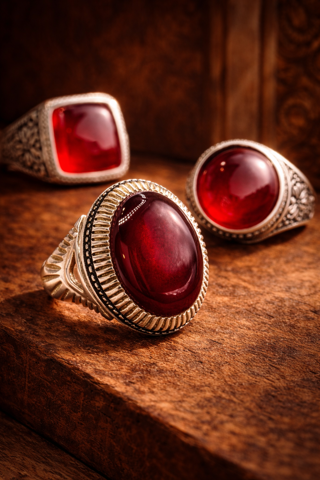 تسوّق أجود خواتم العقيق اليماني الياقوتي الأحمر الزجاجي