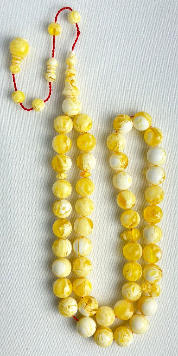 - خامة طبيعية: مستخلصة من صمغ شجرة المستكة، تمنح السبحة طابعًا عضويًا دافئًا ومظهرًا مميزًا.