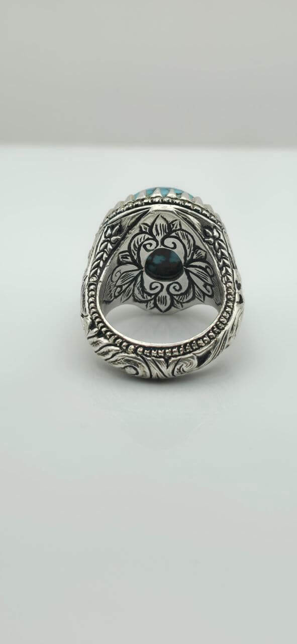 - خاتم فيروز نيشابوري بتفاصيل دقيقة تعكس الطابع العثماني الفاخر.